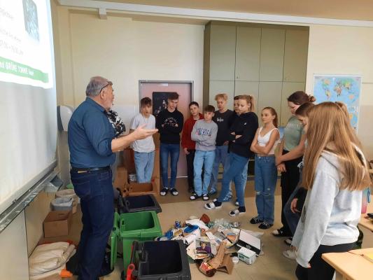 Im Rahmen des großen Schulprojekts „Wert-Stoff Müll – die Kinder von Zöbern auf der Spur der Nachhaltigkeit“, war der Abfallberater des Abfallwirtschaftsverbandes (AWV) Neunkirchen zu Gast an der MS Zöbern.
