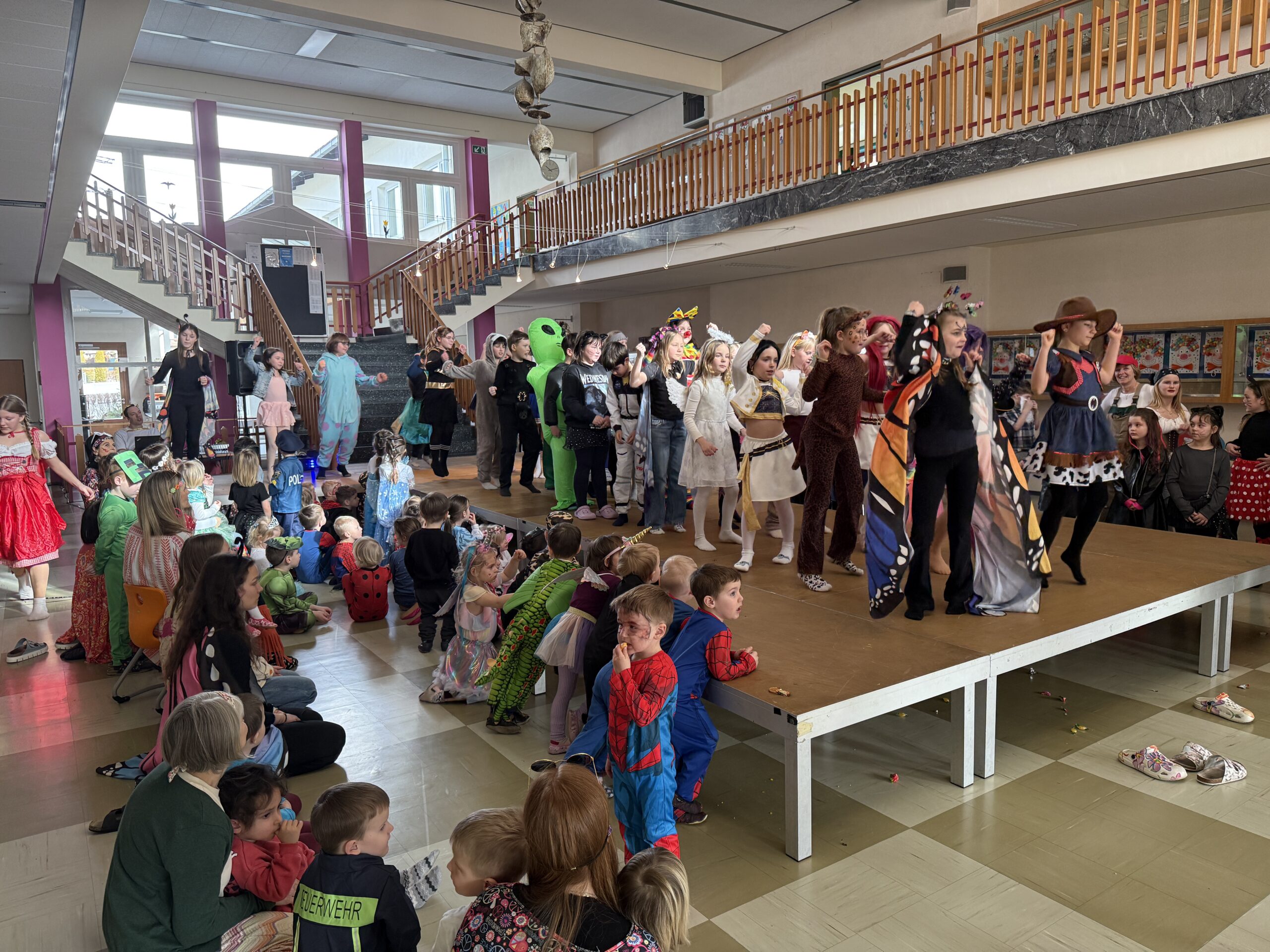 Zwischendurch gab es tolle Showeinlagen der Volksschule, die das Publikum begeisterten. Für das leibliche Wohl sorgte der Elternverein, der allen köstliche Krapfen spendierte – eine schöne Faschingstradition.